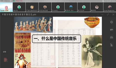 霍豆豆老师授课心得:2022年11月5日,在结束此次直播课程“丰富多彩的中国传统音乐”、与学生挥手作别时,突然有一种不舍和意犹未尽之感。从备课到授课,本着“努力讲好中国故事、传播好中国声音”的原则,尽可能地通过学校搭建的平台向国外友人传递经典且有趣的中国传统音乐文化及故事,无奈因课程时长有限,只能重点介绍课程相关内容。衷心希望今后有更多与国外朋友进行文化交流的机会,希望学校不断搭建此类平台,愿我等新时代高校“青椒”能够发挥个人所长为中华优秀传统文化传播得更广、更远而发光发热。