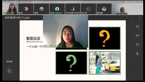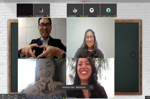 王歌老师授课心得:在进行HSK题型模拟练习时,学员们争先恐后地在聊天框中输入自己的答案,气氛非常活跃,表现了他们对待本次课程的认真态度。对我来说,这节课不仅是关于HSK的汉语课程,更是一次跟学员们以“未来和理想”为主题的交流。学员们有强烈的来华留学、工作的意愿,并正在为之努力,相信他们在未来一定会取得一个好成绩。我衷心希望学员们以后能来到中国,来到信阳,来到信阳学院与我们再次相聚。