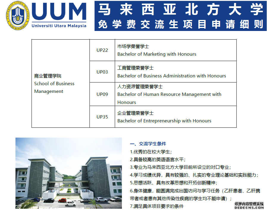 关于选拔2018年赴马来西亚北方大学交流学生的通知